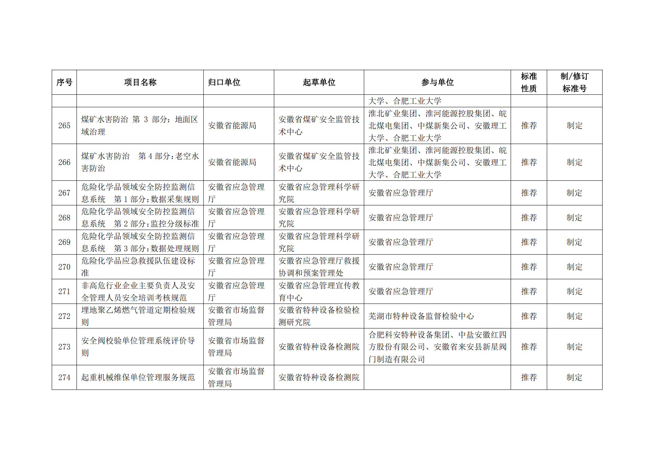 2020 年第二批安徽省地方标准制、修订计划项目汇总表